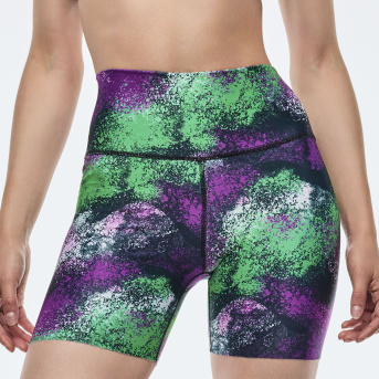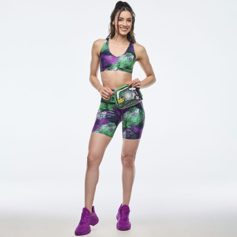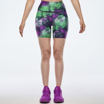Apres Zumba High Waisted Biker Shorts <Green/Purple>-S