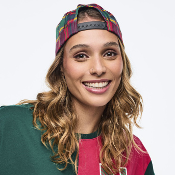 - ツイル素材の帽体に、チェック柄のツバ・サイド・背面デザイン