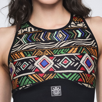 Wildbeat Longline Scoop Neck Racerback Bra <Black/Tan>-XS